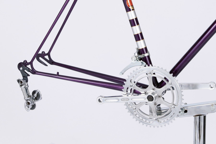 カンパニョーロ&TAで1963年風なロードギヤを再現すればこんな感じだが。これではギヤ比が重すぎ