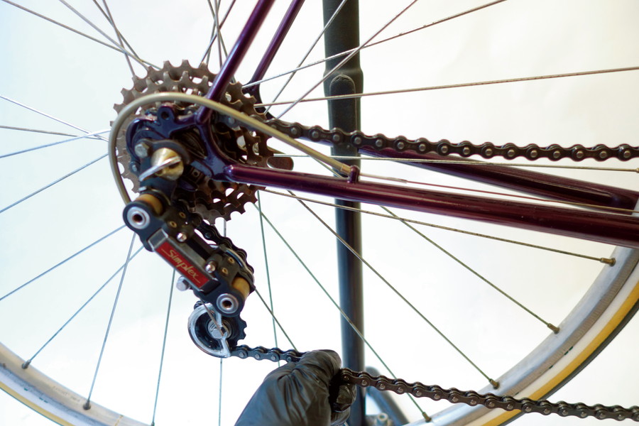 チェーンを装着すれば、伊豆スペシャルギヤの完成だ。チェーンをつなぐ方法は、コネクターではなく、チェーンに元々付いてるピンを使ってつなぐ昔ながらのやり方。久しぶりにこれやった感じ。