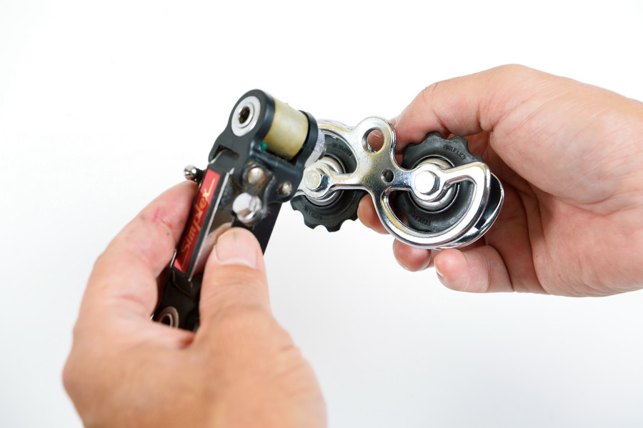 ワイド化を狙って、リアメカもサンプレックスのプレステージに。ケージをツーリングタイプに変更して、キャパシティを増やす。これで、最大ギヤが24Tから30Tへ、トータルキャパシティも26Tから30Tに。