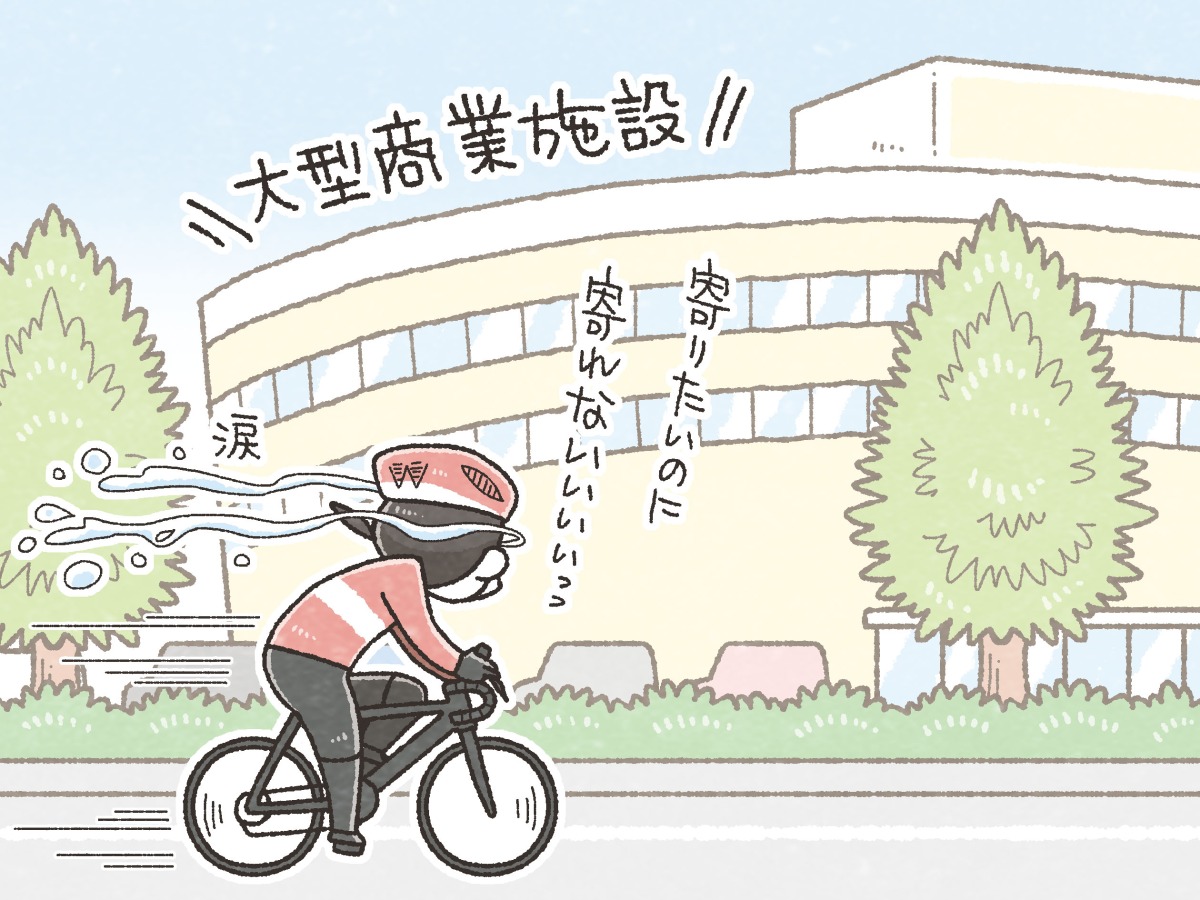そうそう簡単に行けなかった距離のお店でもロードバイクがあればあっという間に行けてしまう。なんなら練習で走りに出るたびに通り過ぎている。しかし、ロードバイクは盗難の恐怖がついて回るので、小さなお店に立ち寄るのにも「一瞬目を離した隙に持っていかれるのでは!?」とビクビクしている私にとっては大型店舗なんてとてもじゃないけど立ち寄れません。