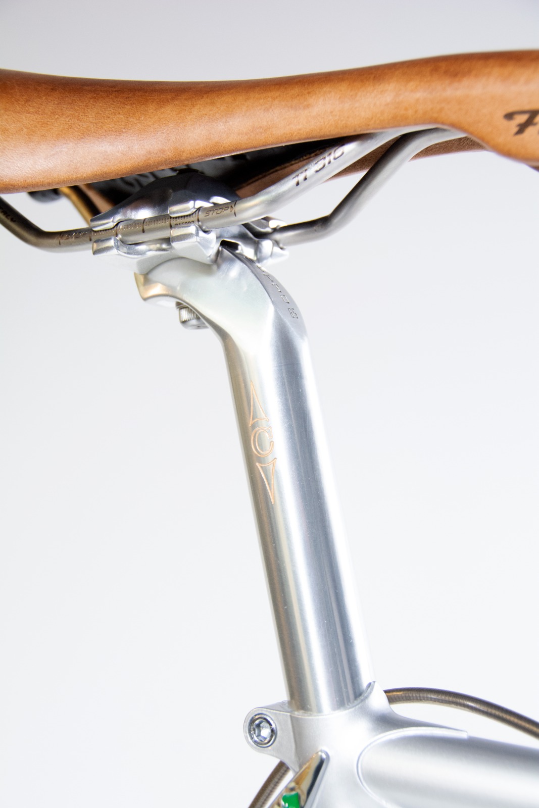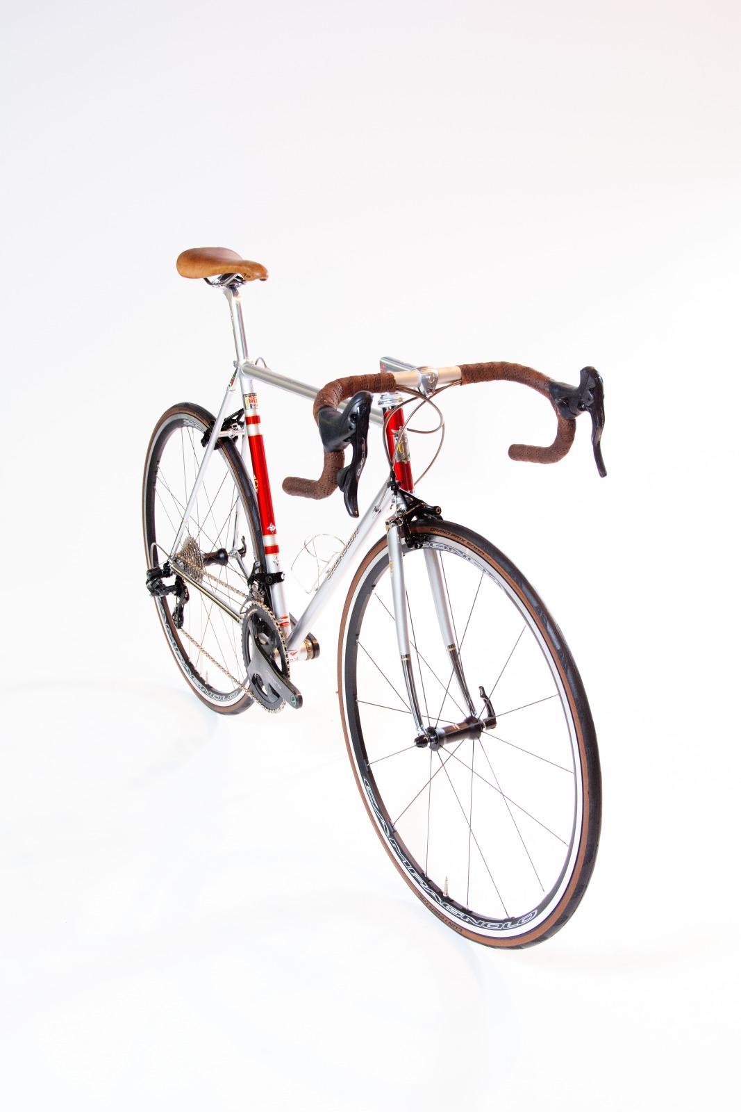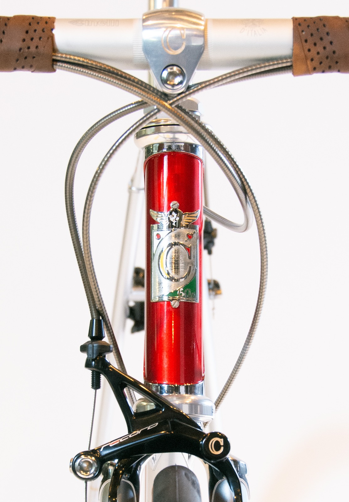 フレームには「KAISEI TUBE」製クロモリ鋼管を採用し、BB裏には60周年ロゴとシリアルナンバーを刻印。ブレーキ&シフトケーブルはフル内蔵設計を採用し、すっきりとした外観とメンテナンス性を両立。コンポーネントはカンパニョーロ・レコード、ホイールはゾンダ、タイヤはコンチネンタル GP5000を搭載し、レトロな外観ながら現代的な走行性能を実現した。日東製のステムとシートポストには60周年記念彫刻を施し、特別感を強調している。
