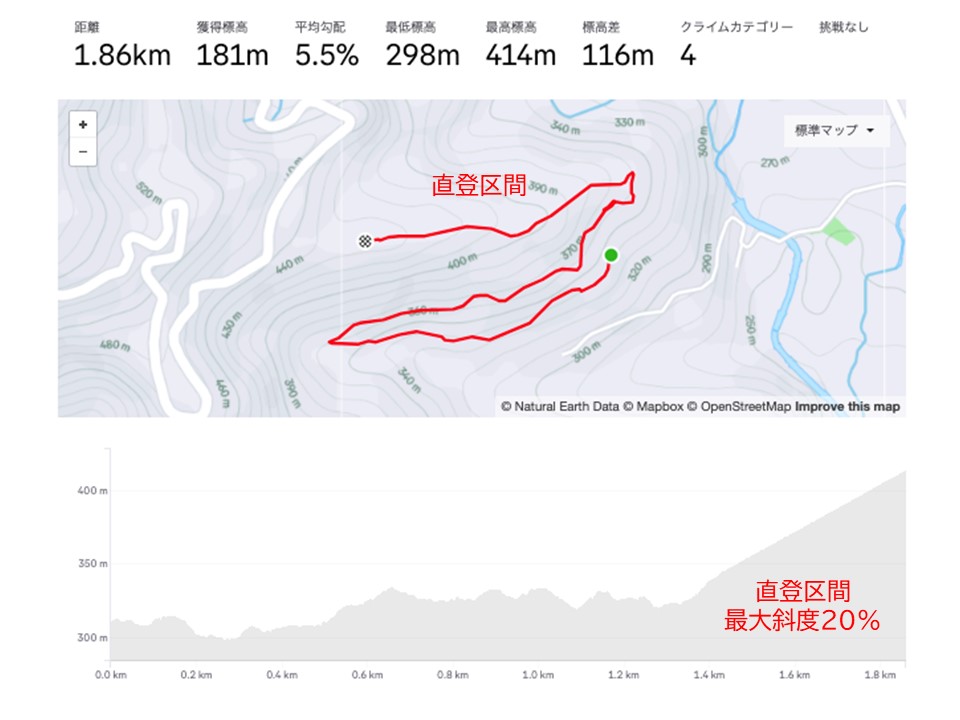 上級Gravelでは激坂直登でのタイムチャレンジ