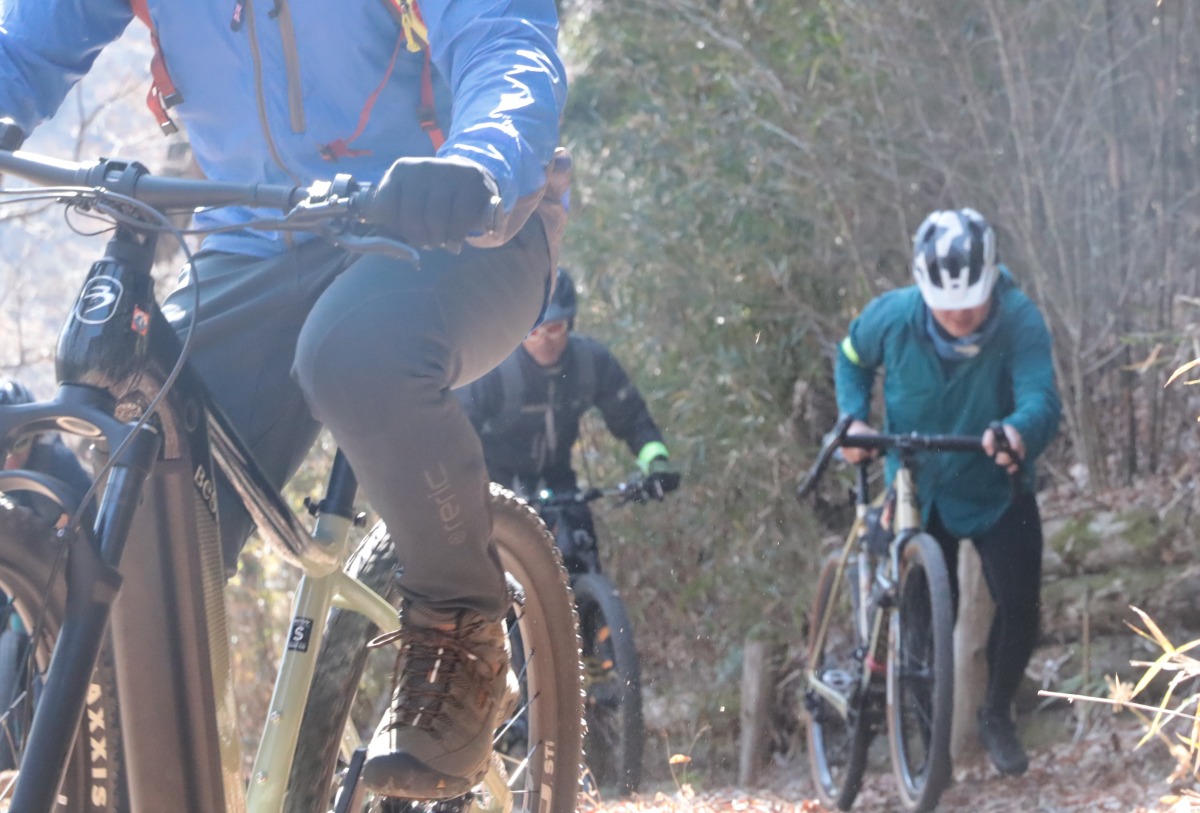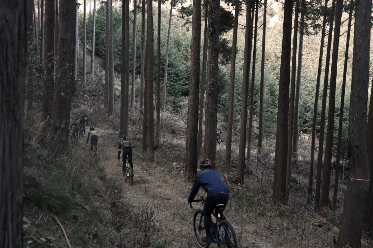 中級者向け「Gravelヤビツ ライドツアー」はすすき野を走るフラットな道と傾斜のある森の中の道を組み合わせたコースとなる。森林組合が木の伐採に使うために作られた道なので、基本的には乗車可能なダブルトラックだ。ただし、一部藪こぎもあるので、体の保護、防寒を考えると長袖、長パンツは必須だ。体温調整できるウエアを用意しよう。