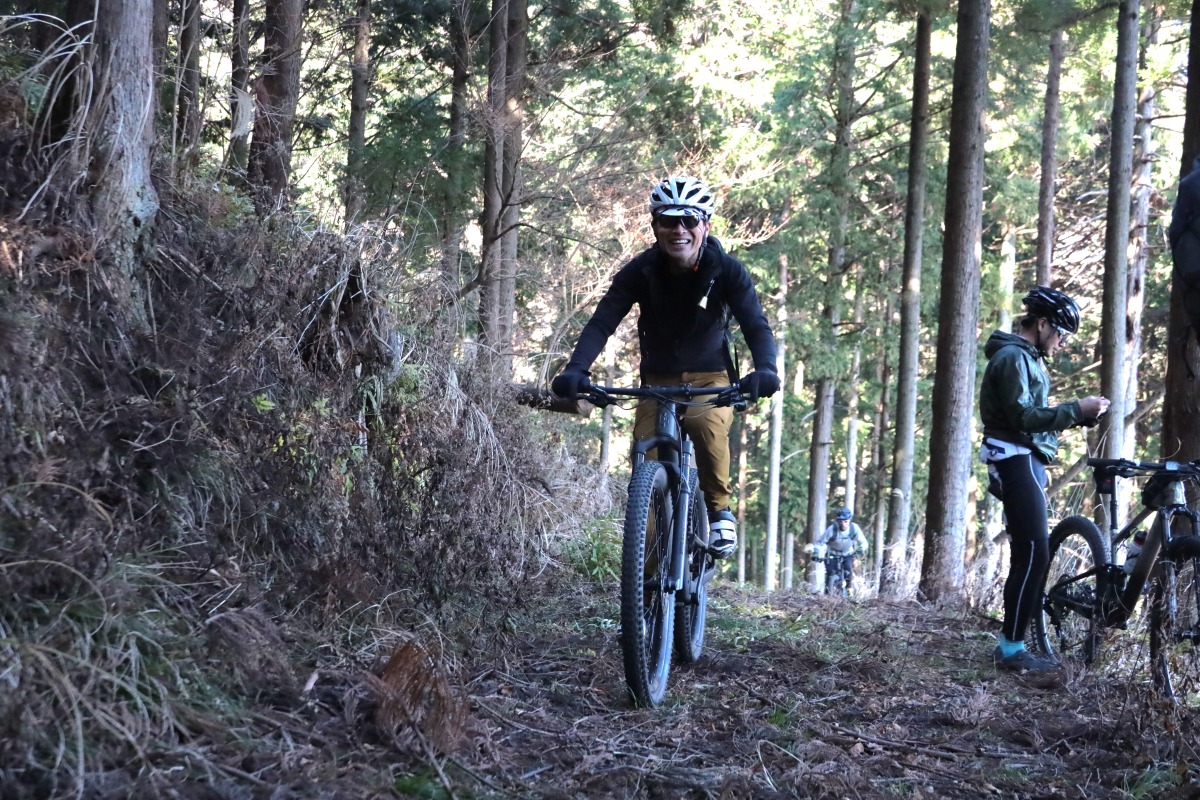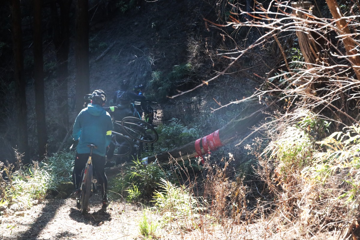 さらに後半は一度県道71号の舗装路を下ってから、菜の花台まで続く未舗装コースを走る。こちらは倒木のあるワイルドなコースが楽しめる。上りがいのあるコースを上ったあとは、菜の花台へ向けての楽しい下りが待っている。