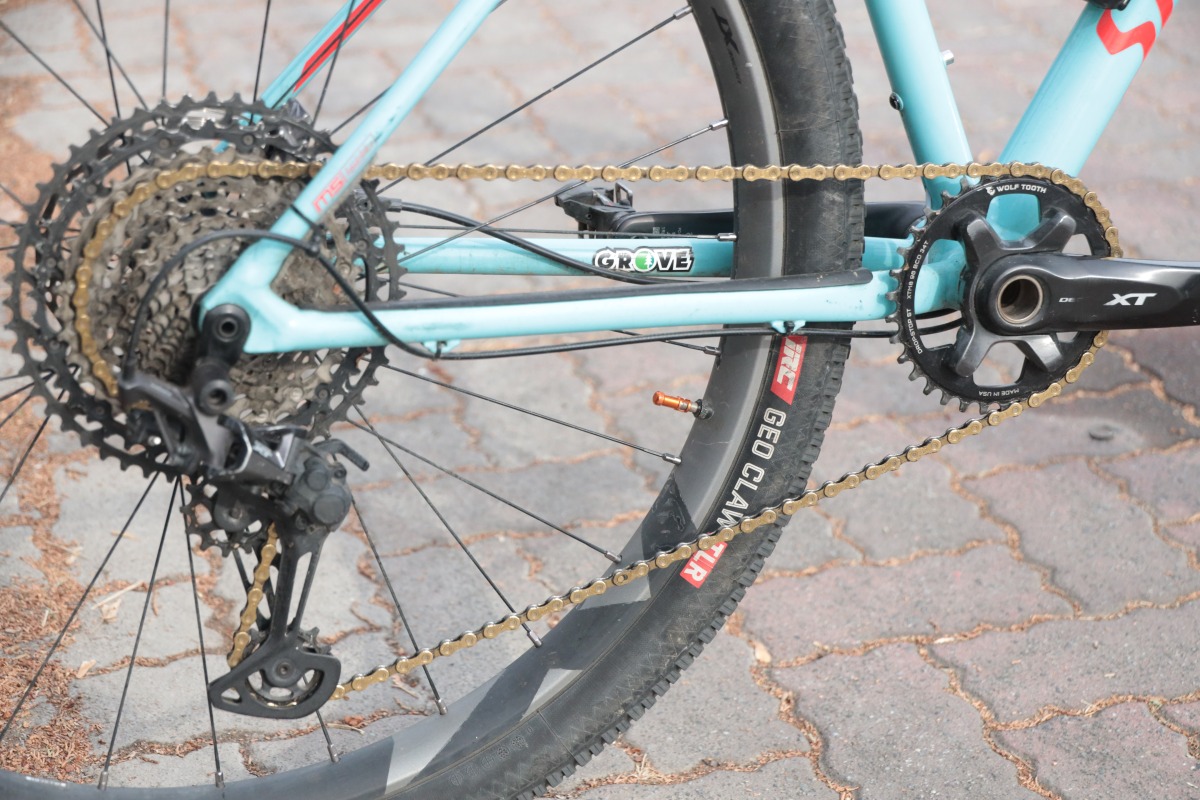 どんな機材がよいのか? 舗装路での上りも考えるとグラベルバイクがおすすめだが、エキスパートクラス Gravelヤビツ ヒルクライムチャレンジを走るならマウンテンバイク(MTBーXC)も選択範囲に入る。今回、エキスパートクラスコースの最大20%直登を最も快適に上っていたガイドライダーの黄田さんの場合、に29×2.4インチタイヤ、さらにギヤは34×52Tという組み合わせだ。玉のような敷石区間では太いタイヤが欲しくなる。