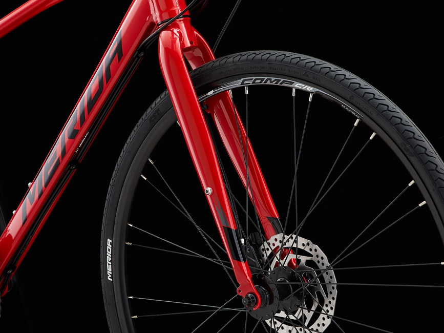 メリダといえば「フレームの生涯保障」が特徴、これはユーザーにとって大きな安心感だ。さらにシマノ製油圧ディスクブレーキ採用のクロスバイクがこの値段で買えるのはうれしいところ。特に通勤通学など、雨天時でも走る可能性が高いクロスバイクにとって、安心は大切なポイントです。