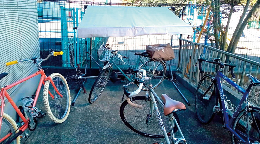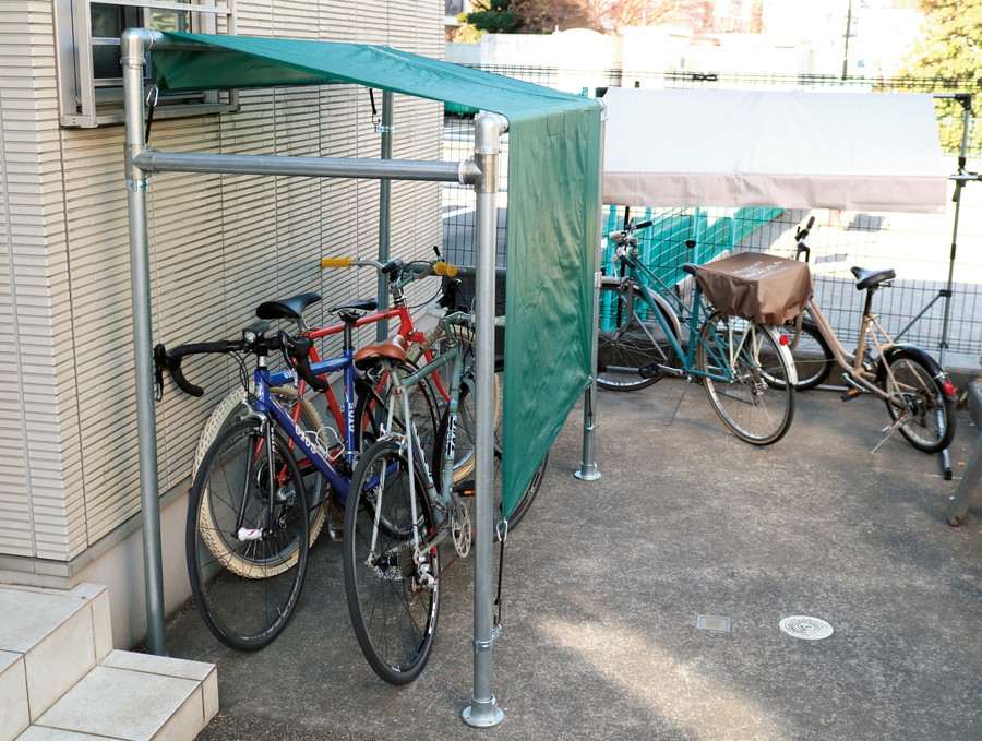 通販で15000円くらいで買えるサイクルポートを使っているが、2台くらいしか入らない。かつタイラップで止めていても風ですぐ動いてしまうので、小径ママチャリを一台倒して重りにしている始末。台風の際にカバーを外すのも手間だ