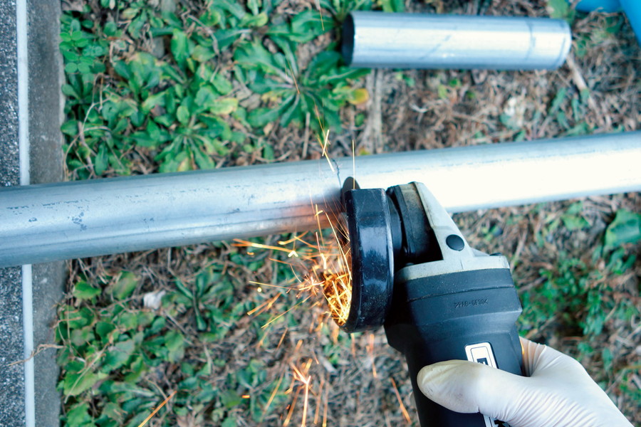 直径48.6mmある。グラインダーなどで火花を散らしてカット。ややハードルが高い作業だが、ストレス発散になるので嫌いではない