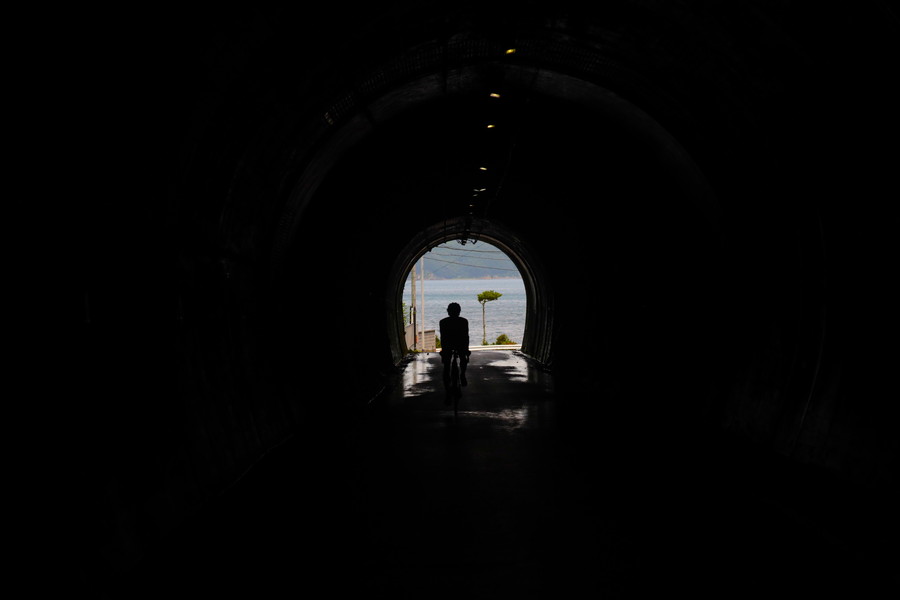 宮城出身のリンネさんにとって身近な存在のリアス海岸だが、高い防波堤で囲まれた三陸とは違い、鶴見半島では低い堤防の脇に海がある。「トンネルの入口と出口、両方から見える景色が海というのは、長細い鶴見半島の特徴かもしれません」とリンネさん。