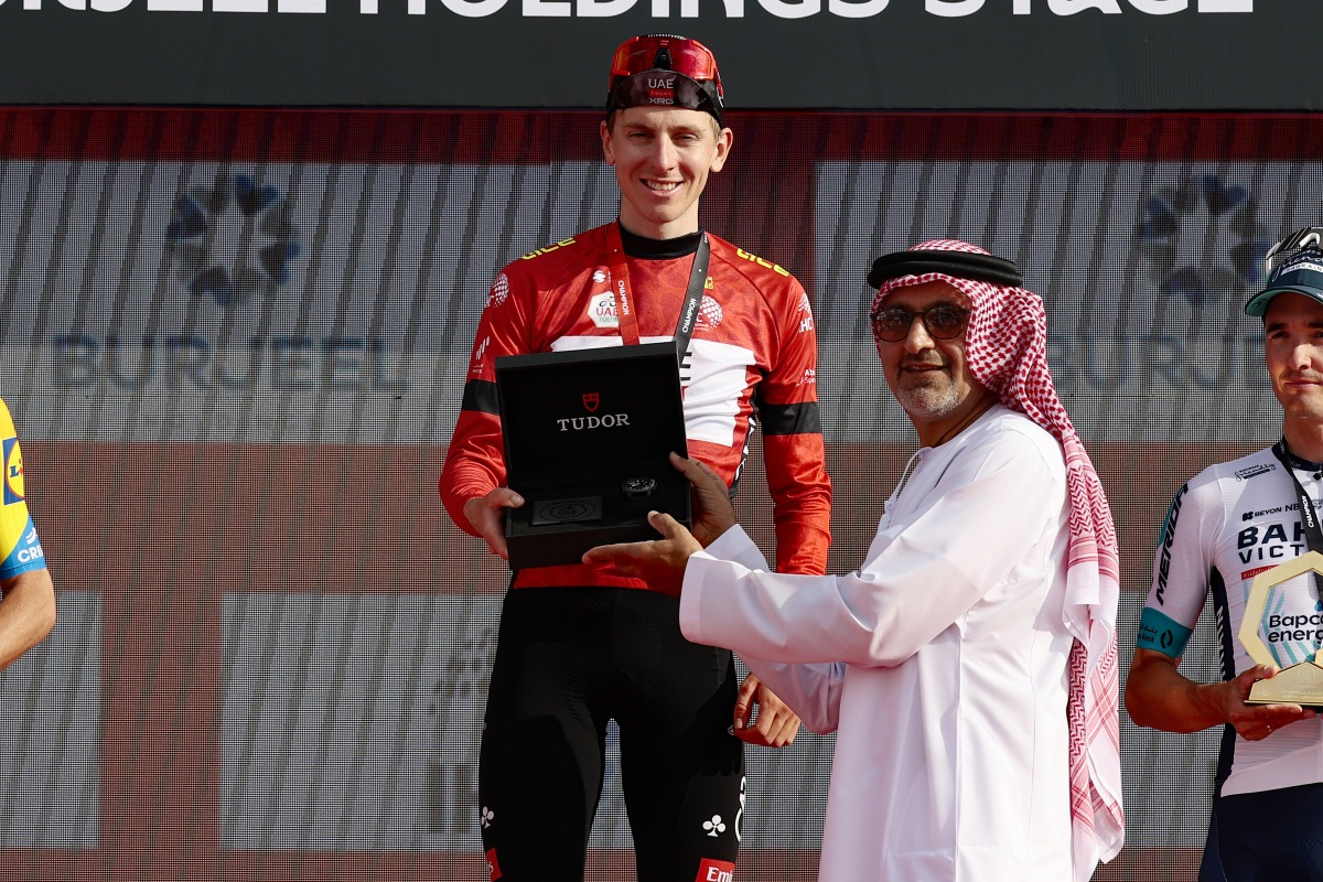 12.2kmの個人タイムトライアルで競った第2ステージを3位でまとめると、1つ目の山頂フィニッシュとなった第3ステージに照準を定めた。全長21.6km・平均勾配5.4%のジュベル・ジャイスの上りをアシスト陣がペースメイク。それまで逃げていた選手たちを捕まえて、残り1kmで集団を約20人まで絞り込む。ポガチャルは最終局面までアタックを我慢すると、残り200mで急加速。上りスプリントさながらのアタックでライバルの追随をかわすと、今季初勝利となるステージ優勝を決めた。