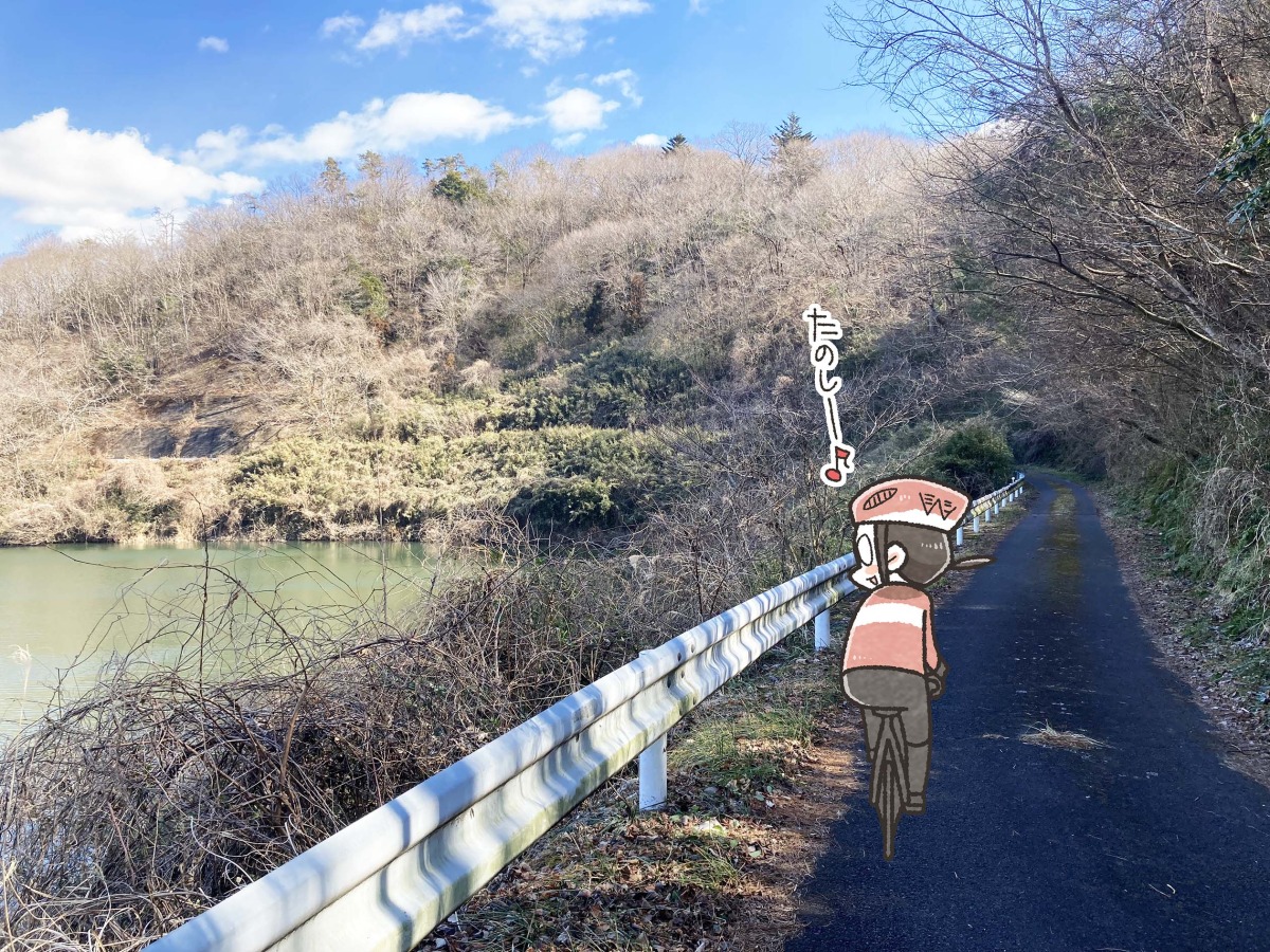 カフェを後にして向かったのは飯田ダム。ダムの周囲をぐるっと回ることができますよ。こういう道大好きです。