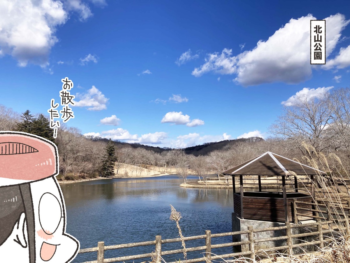 ダムを一周したら南下し、小高い山を超えます。途中、北山公園で休憩。遊歩道などがあってのんびりお散歩するのによさそうですよ。