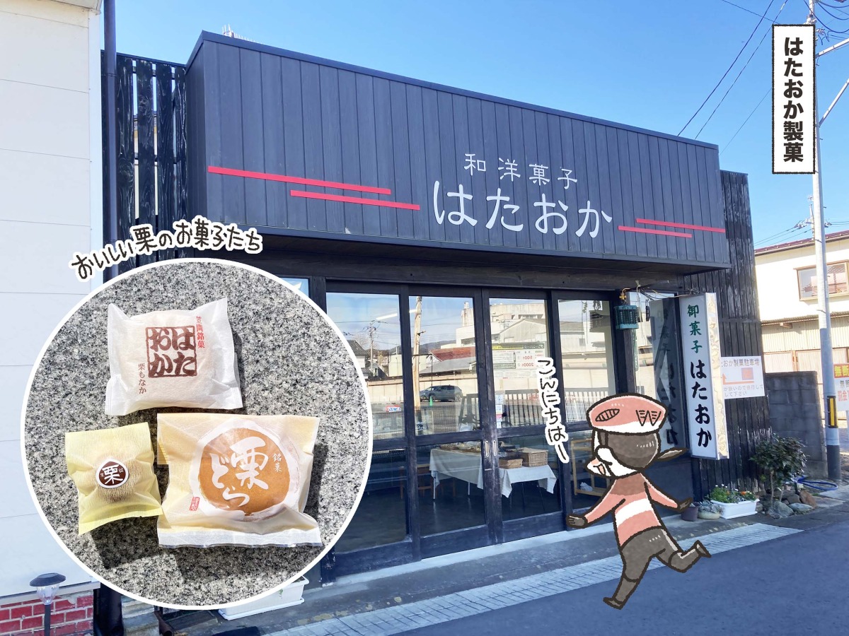 門前通りから少し離れた通りにある「はたおか製菓」。こちらは8時の開店なので、朝の早いサイクリストには嬉しいですね。道中のおやつとして栗のお菓子を購入しました。