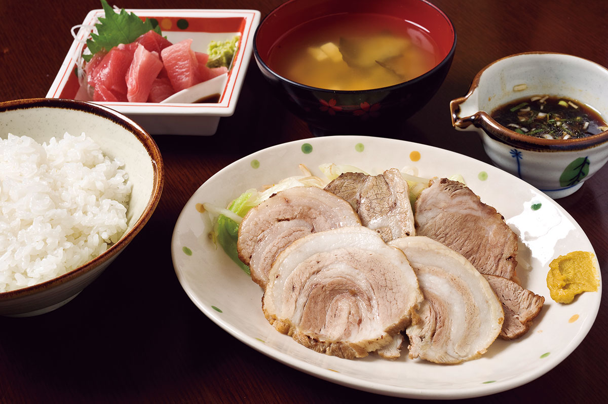 店の名物として知られている のは、魚介ではなく、意外にも「ゆで豚」。茹でることで脂身が甘く感じしっとりとろける。