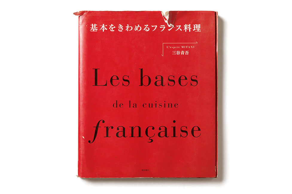スタッフが頻繁に引っ張り出しているため、お店では通称 “赤本”と呼んでいる。 L’esprit MITANI(レスプリ・ミタニ)オーナーシェフ・三谷青吾氏が、現役シェフに向けて書いた料理レシピ集。