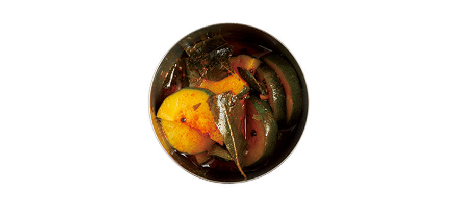 3. マスタードシードが弾けたら、カレーリーフを加えひと呼吸おいて1に油ごと加える。