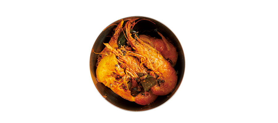 4. 海老に火が通るまで炒め煮し、最後に酢を加える。