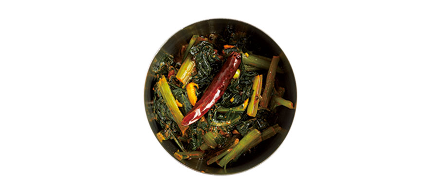 2. 1の小松菜にカイエンペッパー、ターメリックを加えよく混ぜておく。