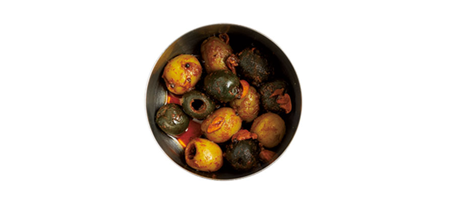 1. オリーブにカイエンペッパーとターメリックを合わせておく。