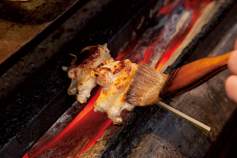 そして焼き台に向かう。紀州備長炭ならではの火力の強さ、火の持ちの良さが、鶏肉のポテンシャルをさらに引き出す。
