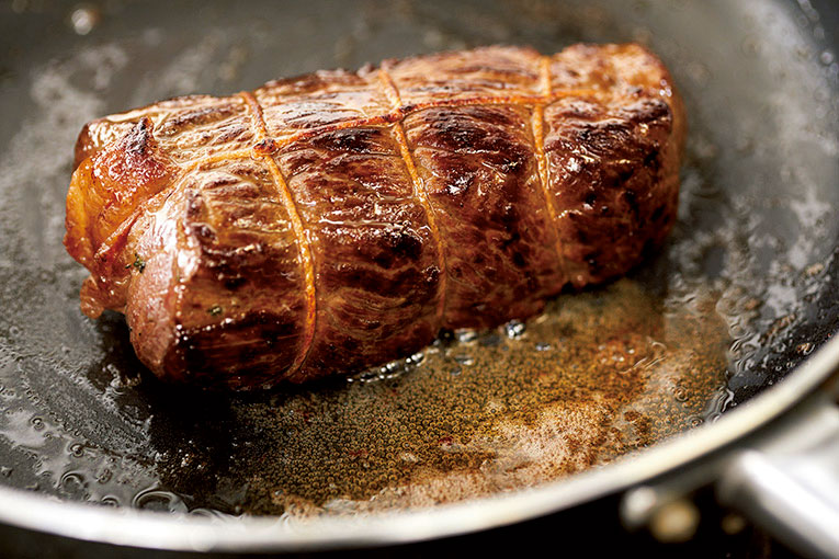 7. フライパンにバターを熱して、5を脂身からさっと焼き、表面にバターの香りをつける。