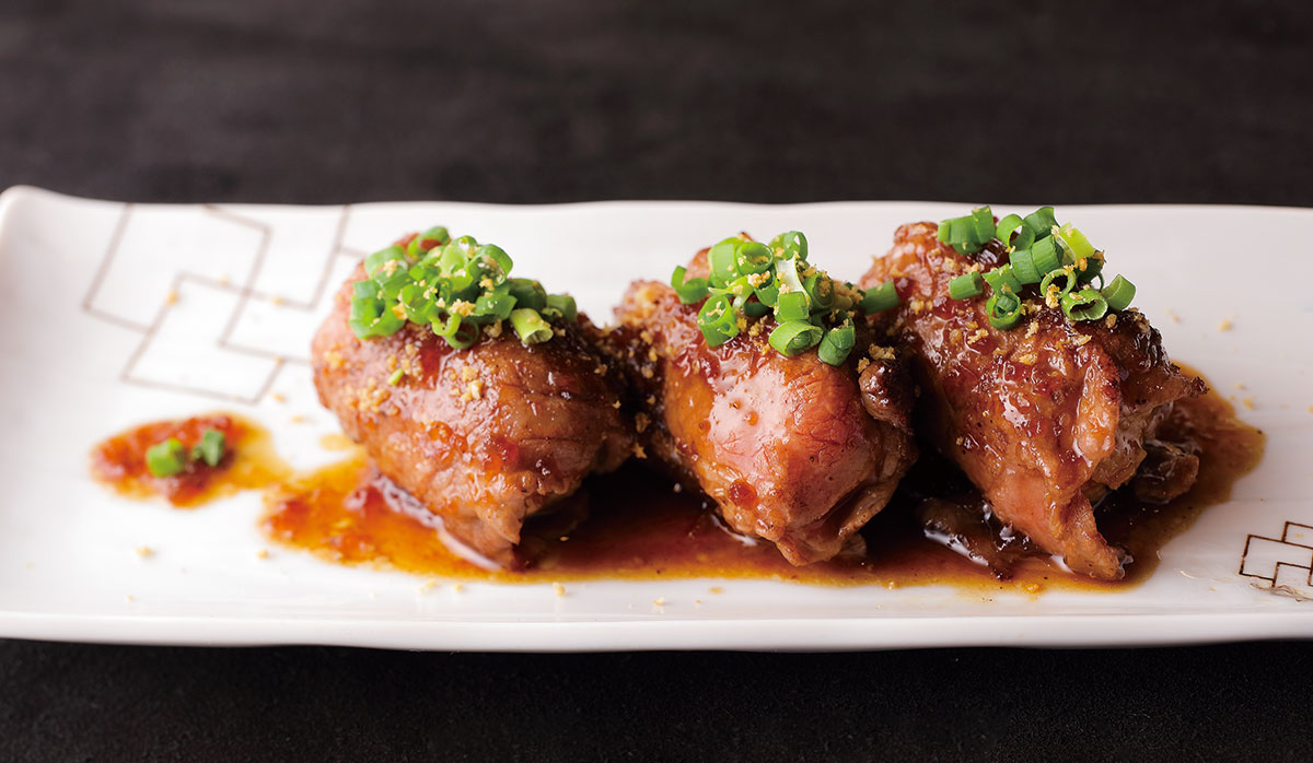 おにぎりをロース肉で巻き、こんがりと焼き上げた後、特製のトリュフソースをかけた香り高い一品。