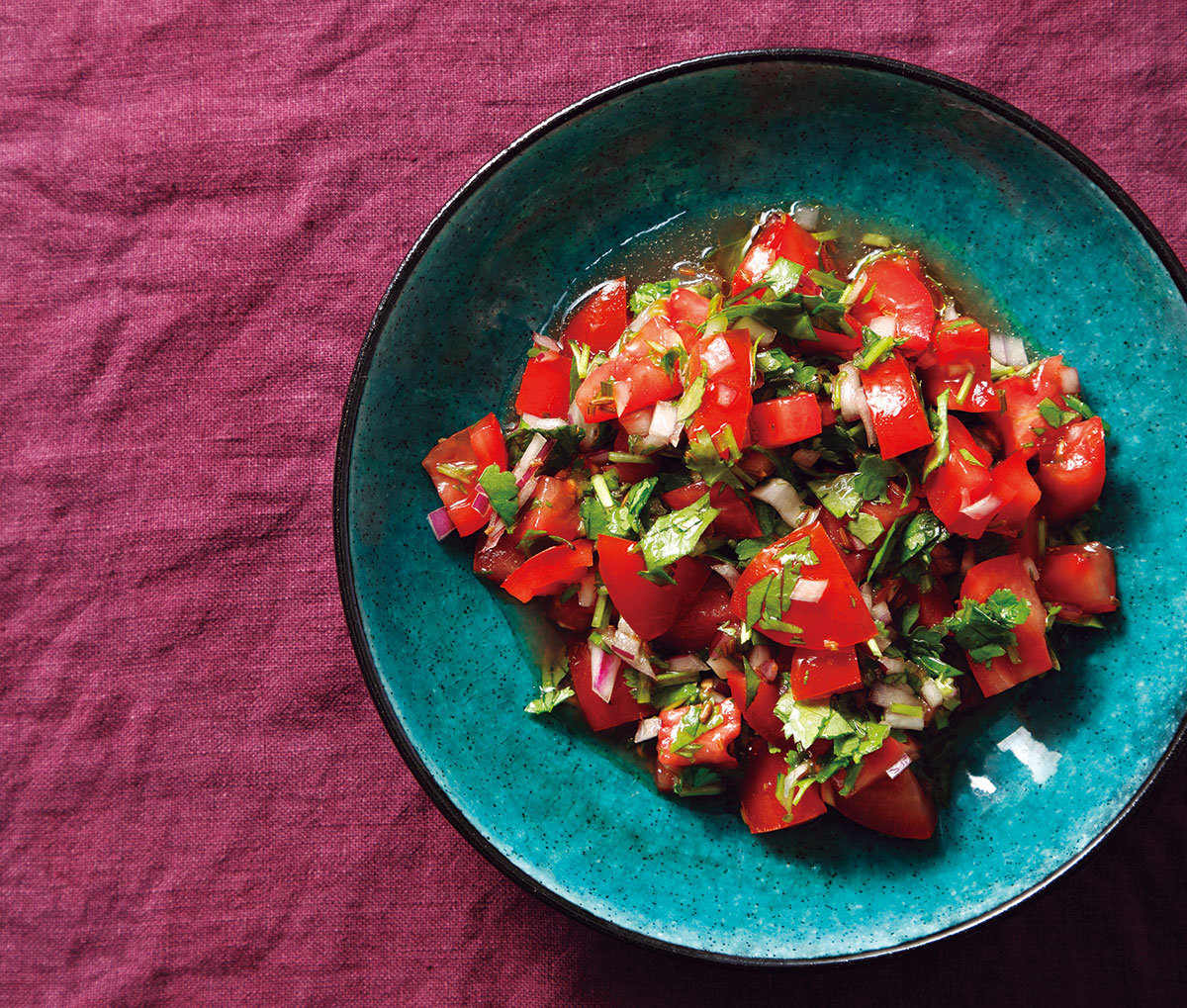 クミンの香りが効いたトマトとパクチーのシンプルなサラダ。