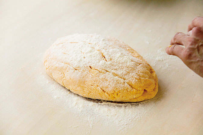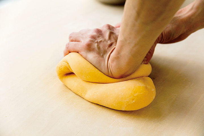 Baseでも提供される「タリアテッレ」はこの生地がベースとなる。粉の量は生地の質感をみながら調整するのが肝だ。