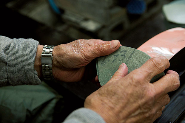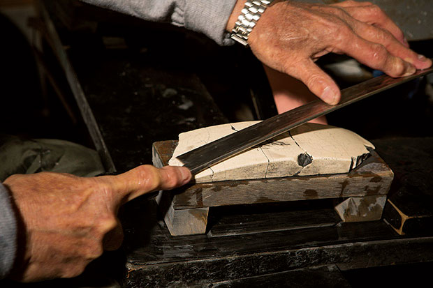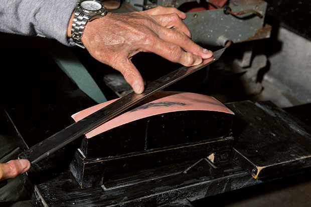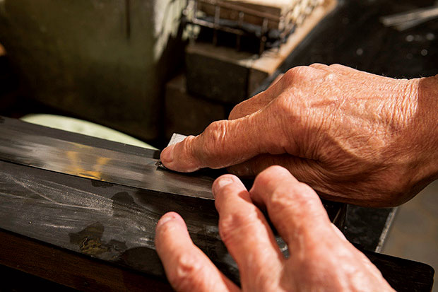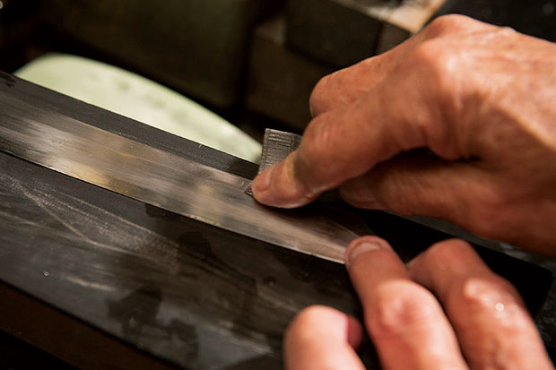 当然、その工程を見ても神業の域に達している坂下氏の真似をできるわけではないが、唯一無二の研ぎ技術はどうなっているのか気になる。ここでは特別に研ぎの工程を見せてもらった。