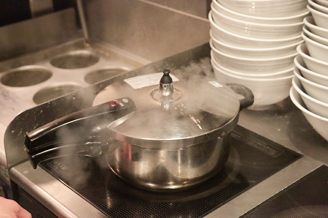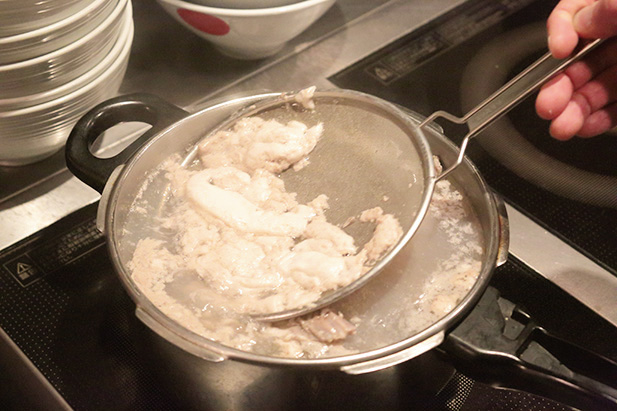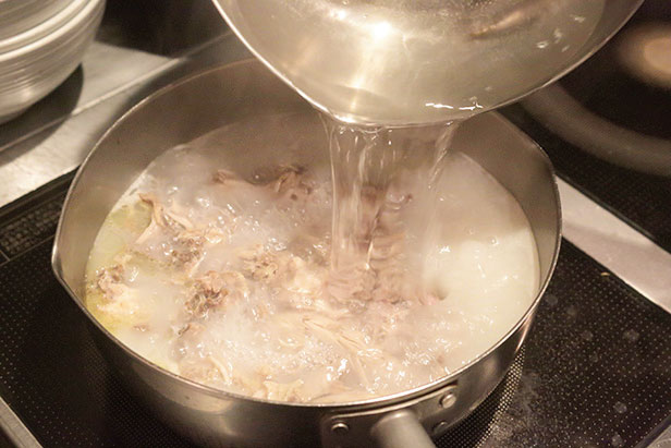 白濁したクリーミーさが特徴の白湯。ここでは塩ラーメンに使用する。