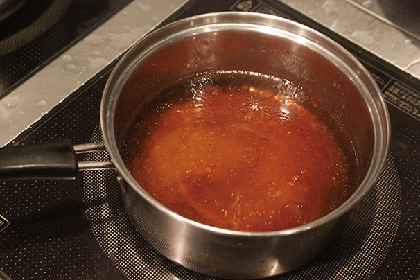 6 鷹の爪の縁が黒ずんだら火から下ろし、濾す。