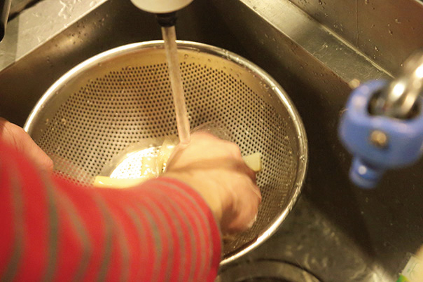 2 ぬるま湯に10分さらすことで臭みを取ることができる。