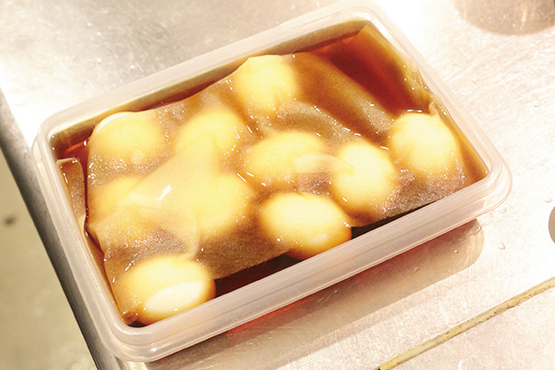 4 殻を剥いた卵に3を流し入れ、冷蔵庫で12時間漬け込み完成。