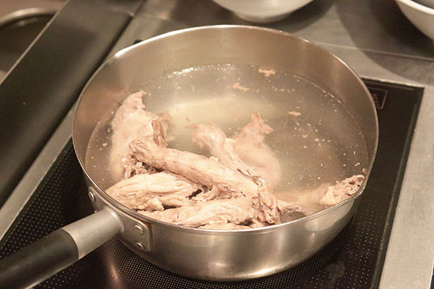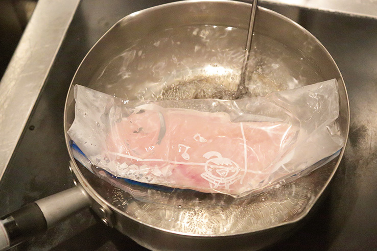 湯煎で作るしっとりとした鶏チャーシューもまた、ゲスト歓喜の一品となる。鶏白湯スープとの相性はいわずもがな。