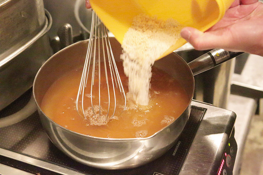 6 仕上がりが1kgになるよう水で分量を調整し、粗熱を取ったうえで冷蔵庫に入れたら一晩寝かせて完成。