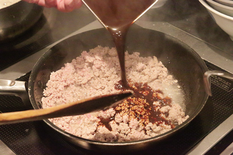 坦々麺には欠かすことのできない肉味噌のレシピがこれだ。山椒によりシビレを感じる旨味の詰まった具である。