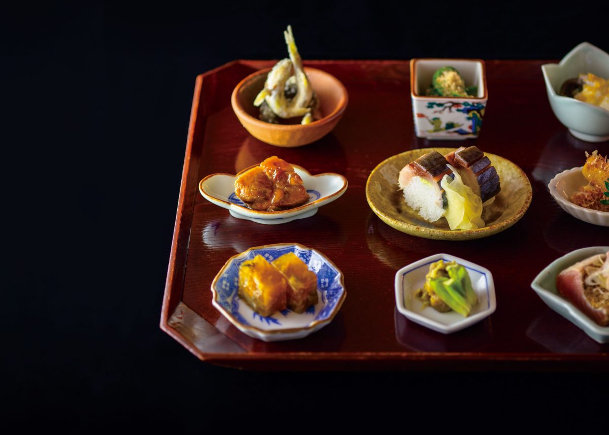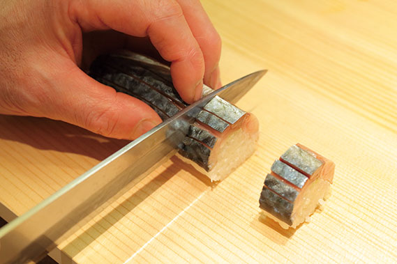 鯖寿司も豆皿に盛り付けることを考慮し通常より小さく作る。刺身のサクも小さめを選ぶなど、材料を調達するときからサイズ感を意識しておきたい。