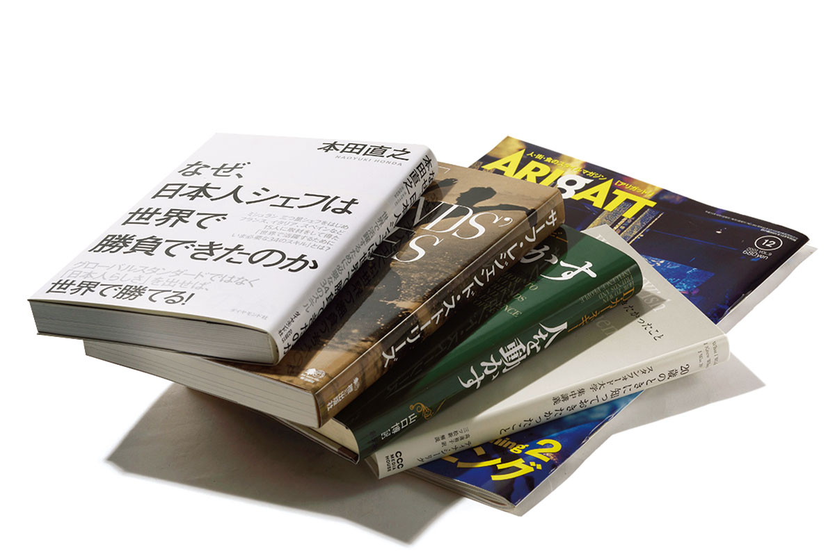 「料理を提供する先にはお客様が、つまり人がいます。そしてこちらも人。その人間関係こそが重要であると考えます。料理ばかり勉強して、人として成長していなければカウンターに立つことはできません。閉鎖的な厨房で多くの時間を過ごすからこそ、人間的な成長の糧となる本を手にしています」
