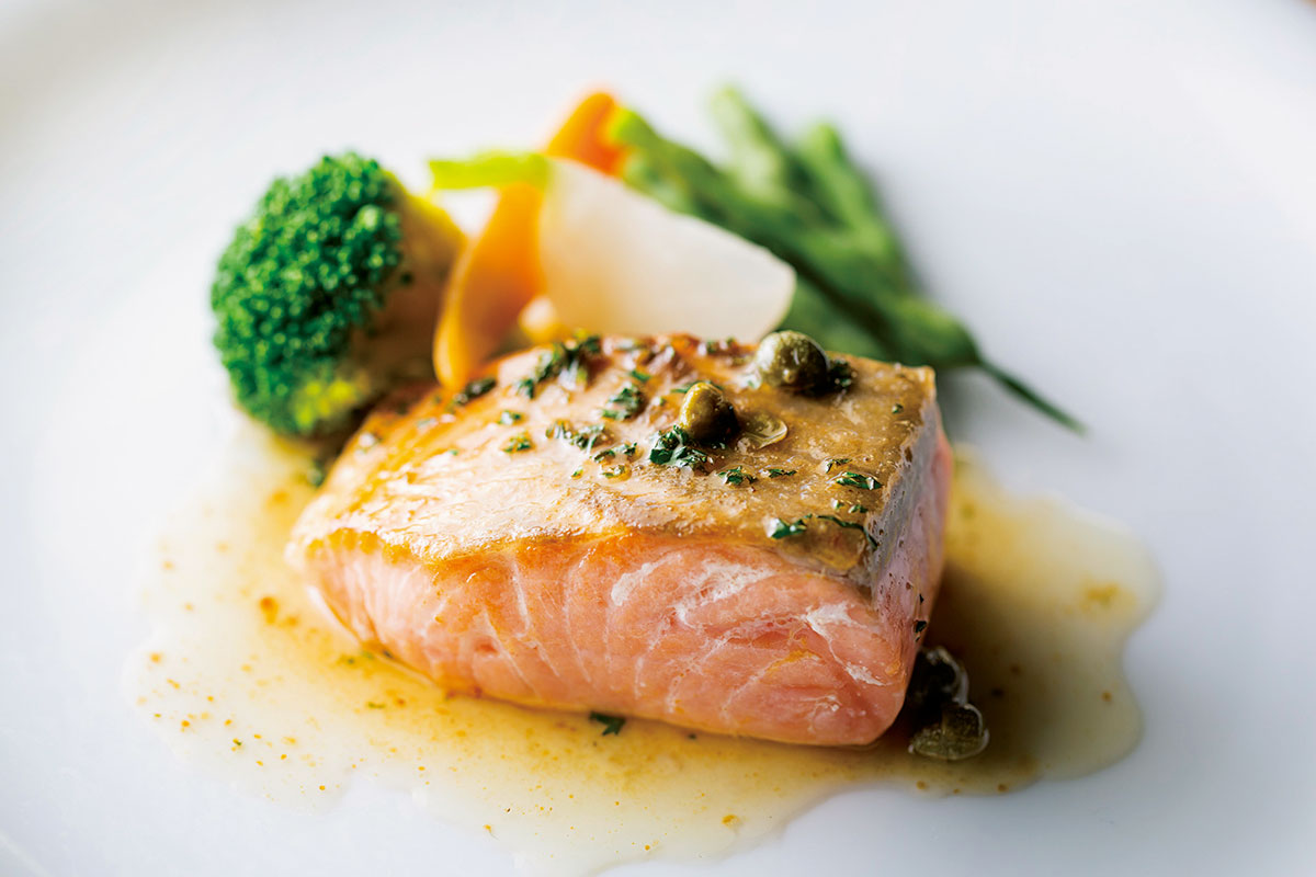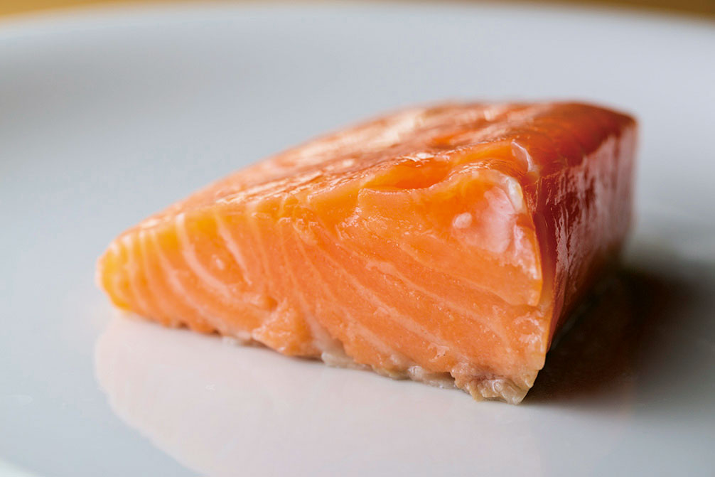 肉より低い温度でタンパク質が凝固する魚は、より手軽に低温調理ができる。サーモンを 45分間低温加熱すると、40°Cでぎりぎりレア感のある火入れ、45°Cでフレーク状になり始め、50°Cで火が通った状態に仕上がる。