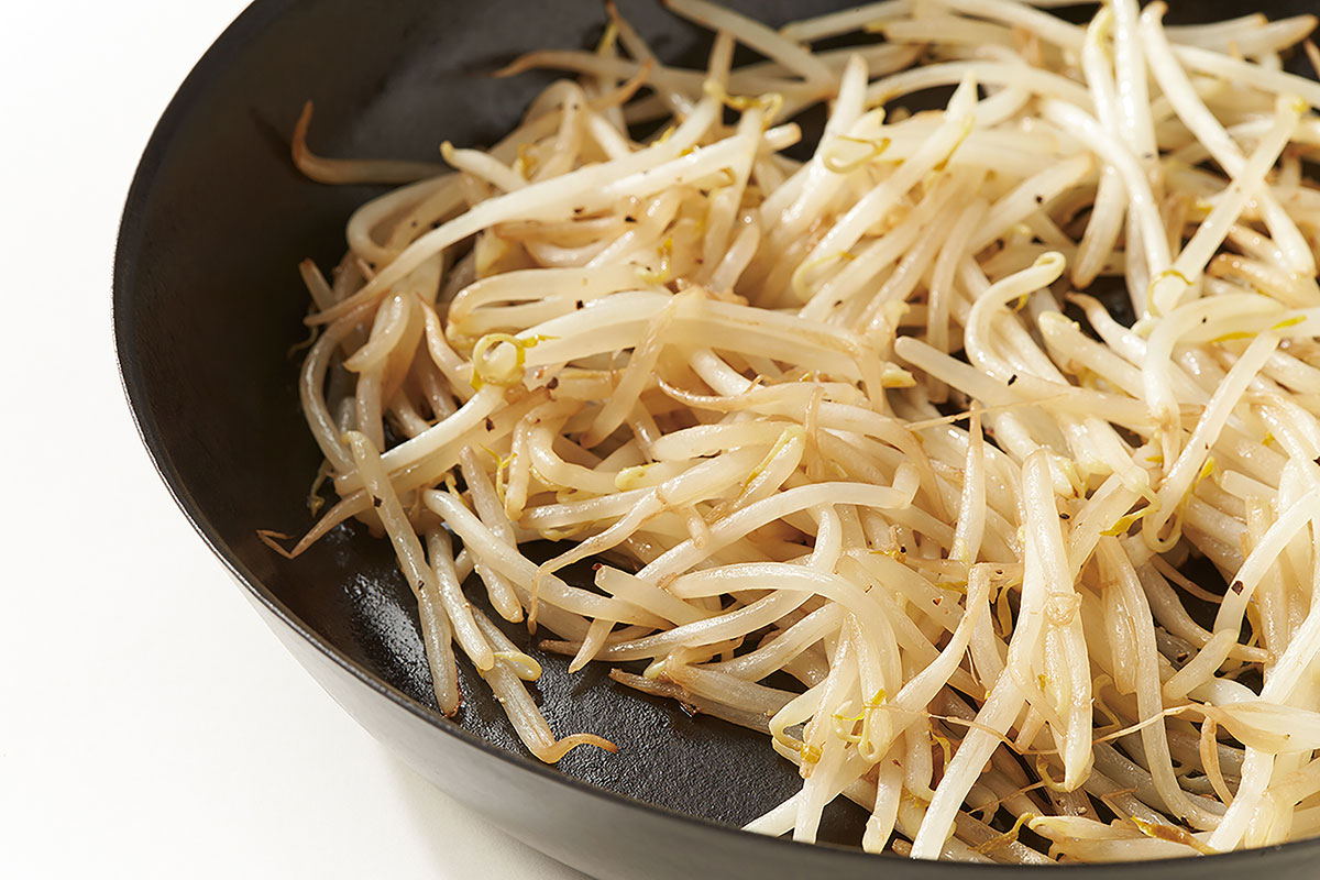 ▲ バーミキュラ フライパンで炒めたもやし。余分な水分が瞬時に蒸発している。