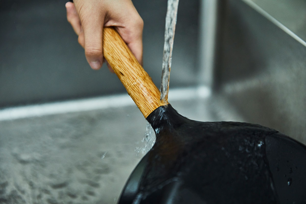 新開発のホーローコーティングは毎日使っても剥げにくい耐久性を持ち、鉄のフライパンのように錆びる心配もない。いつもの洗剤でウッドハンドルまで丸洗いできるので、いつも清潔に保つことができる。