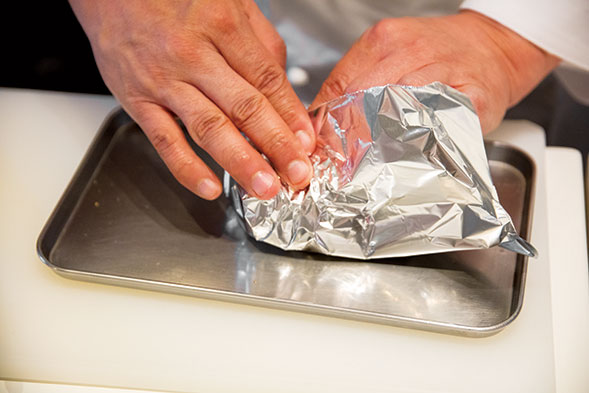 ポイント:コショウとともにホイルに包む