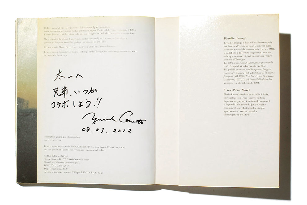 「インテリアには昔から興味があり、友人が働いていた青山の家具店『デコデボネア』(現在は閉店)には良く足を運んでいました。そこで出会ったのがこの本です。レシピを学ぶためではなく、プレゼンテーション、盛り付けの参考に写真を眺めていました」