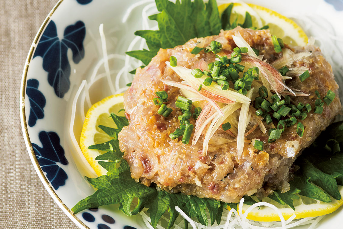 漁師飯の代表格、なめろうを焼いたものが「焼きさんが」だ。なめろうよりも細かに叩き、粘り気を出せば、ふんわりとした焼きさんがに仕上がる。鯵の新たな一面を味わえるひと品だ。