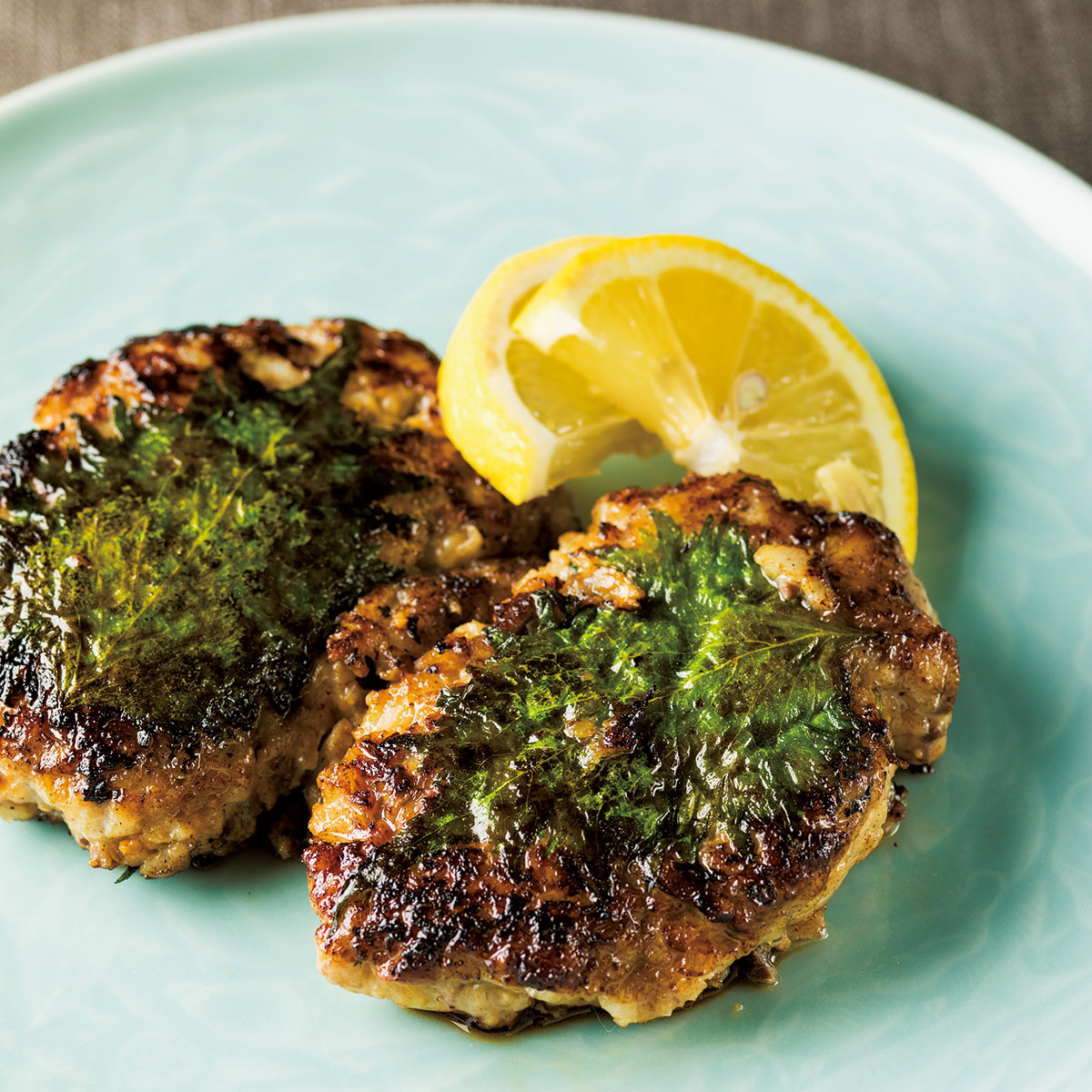3.フライパンに油をひき、2を小判型に成形し大葉をのせ、中火で焼く。レモンを添えて盛る。