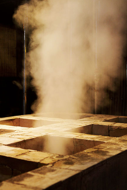 その前に、梯シェフの料理作りには欠かせない相棒がいる。地獄釜だ。別府や鉄輪では天然温泉の蒸気で食材を蒸す調理方法が昔から親しまれてきた。ムール貝を蒸す時などに地獄釜を活用。また、パスタを茹でる際、温泉水も愛用するが、なくても美味しく作れるレシピを公開してもらった。