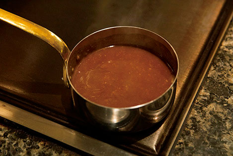 ベースとなるのはフォンドヴォーだ。牛骨やスジ、野菜を煮込んだベーススープだが、自作が困難であれば市販のフォンドヴォー缶を使っても良い。フォンドヴォーに残りの材料を上から順に加えて、一煮立ちさせれば完成となる。