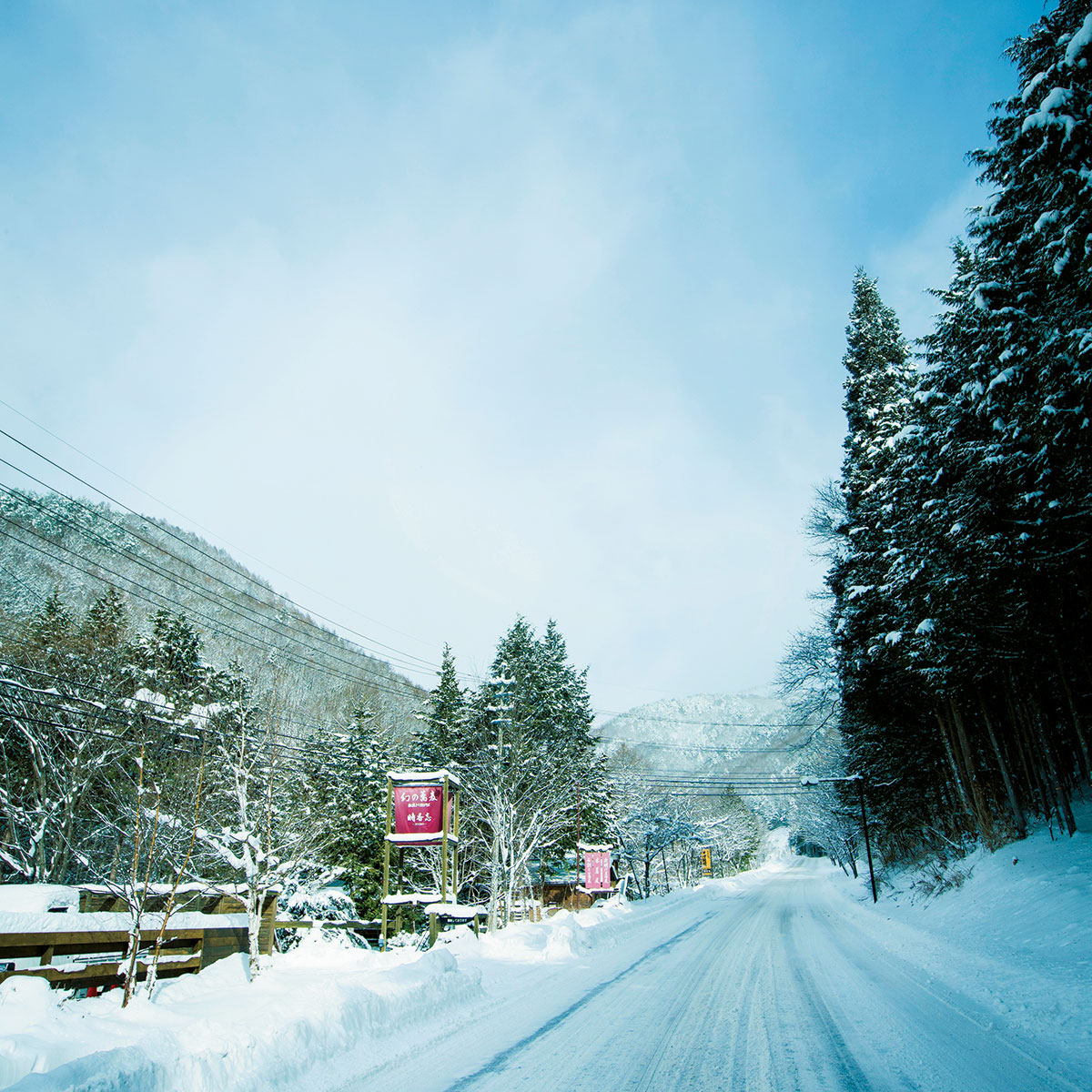 車を降りると、店の前にはモダンなペンションを思わせる板橋のアプローチ。渓流のせせらぎを聴きながら、雪化粧で覆われた森の中に歩みを進めると心が安らいでくる。およそ蕎麦屋とは思えない建物は店内に入っても続く。入口には木工のクラフトが並んだギャラリー、客席は木組みを残した天高の開放感溢れる空間が広がり、川沿いの大きな窓からは豊かな外光が差し込んでいる。外に広がる一面の銀世界に見とれていると、「あそこの巣箱にヤマガラとシジュウカラが子育てに来るんですよ」と店主の高田典和氏が教えてくれた。