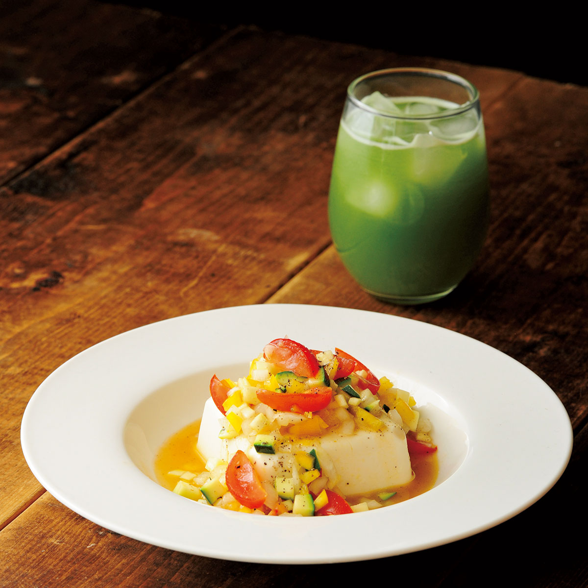 いつもの冷奴を洋風でオシャレな一品に。野菜をたっぷり使ったラビゴットソースは肉や魚とも抜群に合うので、アレンジの幅も広がる。