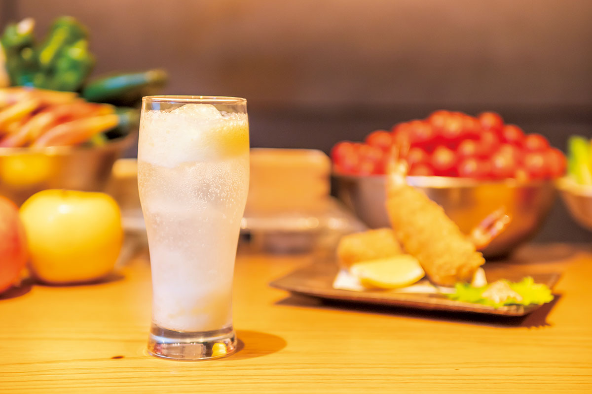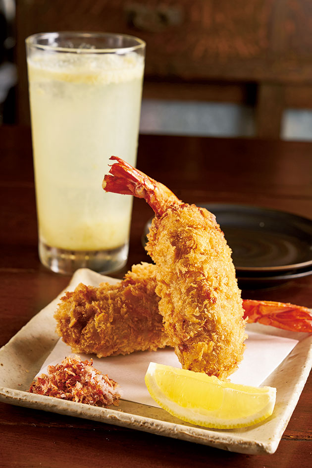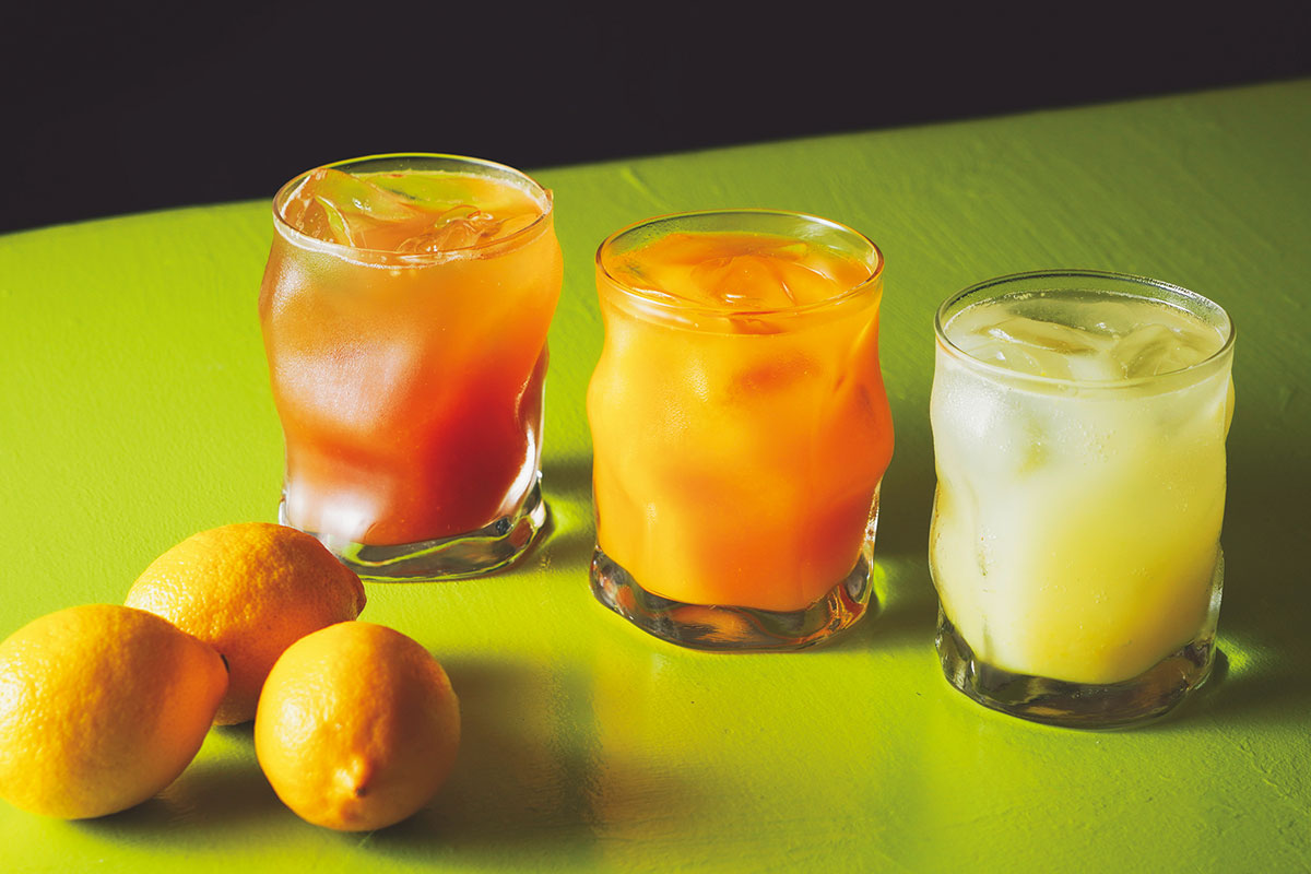 レモンを凍らせるかどうかの違いはあるものの、すりおろしレモンサワーで有名な『食堂とだか』『是屋』の両店は、共にレモンの皮をまるごと使うことによって、苦味まで美味しく楽しめるレモンサワーを提供して いる。ただし、皮をそのまますりおろすだけでは、苦味が際立ちすぎる。そこで、塩や砂糖等で調整しながら、甘み・苦味・酸味といった「レモンの美味しいところ」を上手く調和させた一杯に昇華させるのが匠の技術。“三味一体” のバランスの取れた味わいは、食事との相性も抜群。揚げ物や肉料理といった、こってりとした料理の油をすっきりと流してくれることはもちろん、刺身や和食など繊細な料理の味わいも邪魔することなく、やさしく寄り添ってくれる。